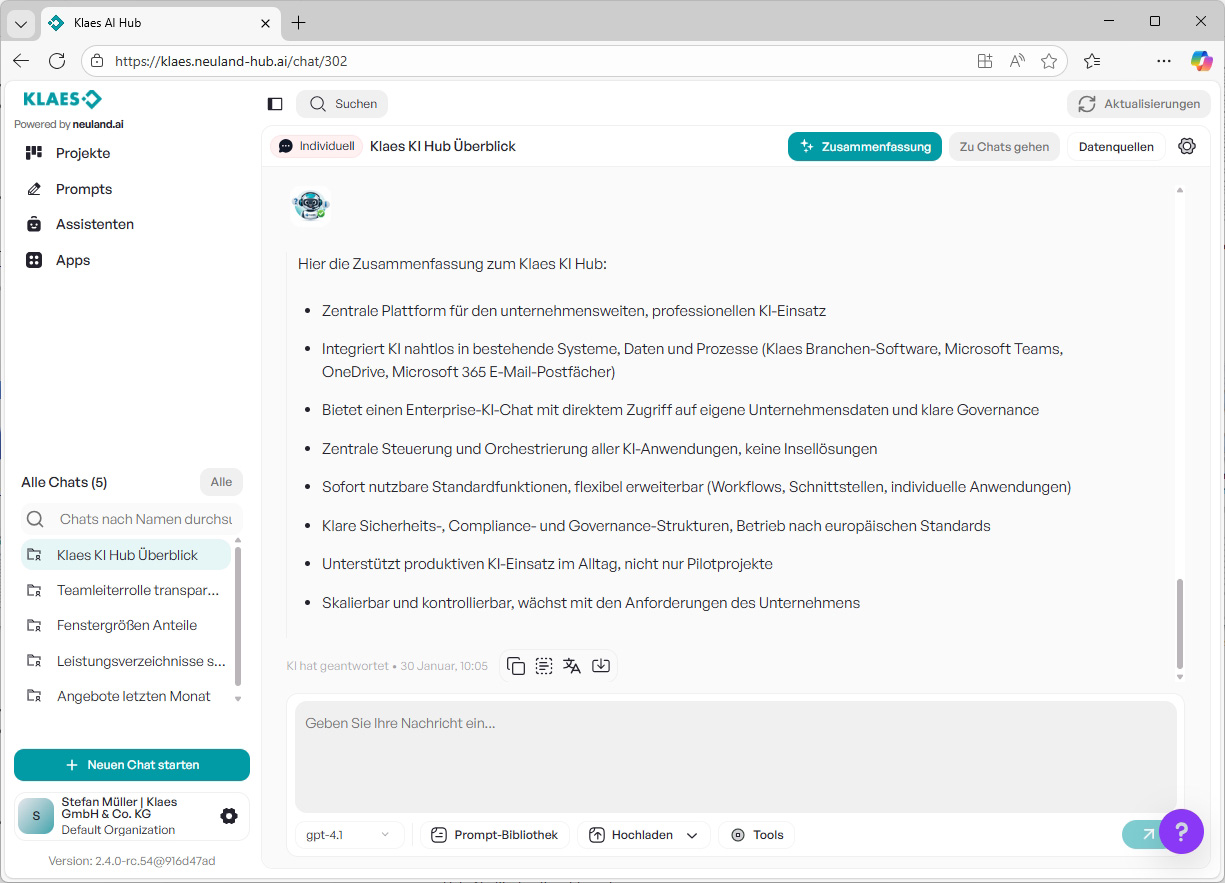 Klaes KI Hub – Künstliche Intelligenz mit echtem Unternehmenskontext